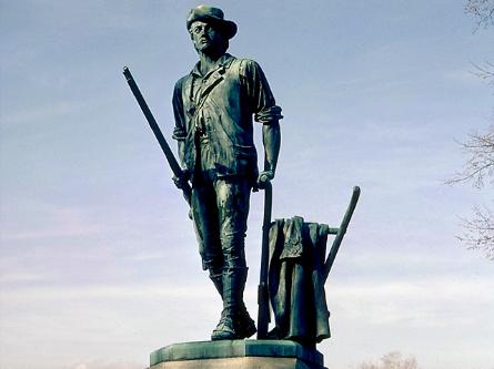 Daniel Chester French’s Minuteman statue of the citizen laying aside his plow to take up his musket.
