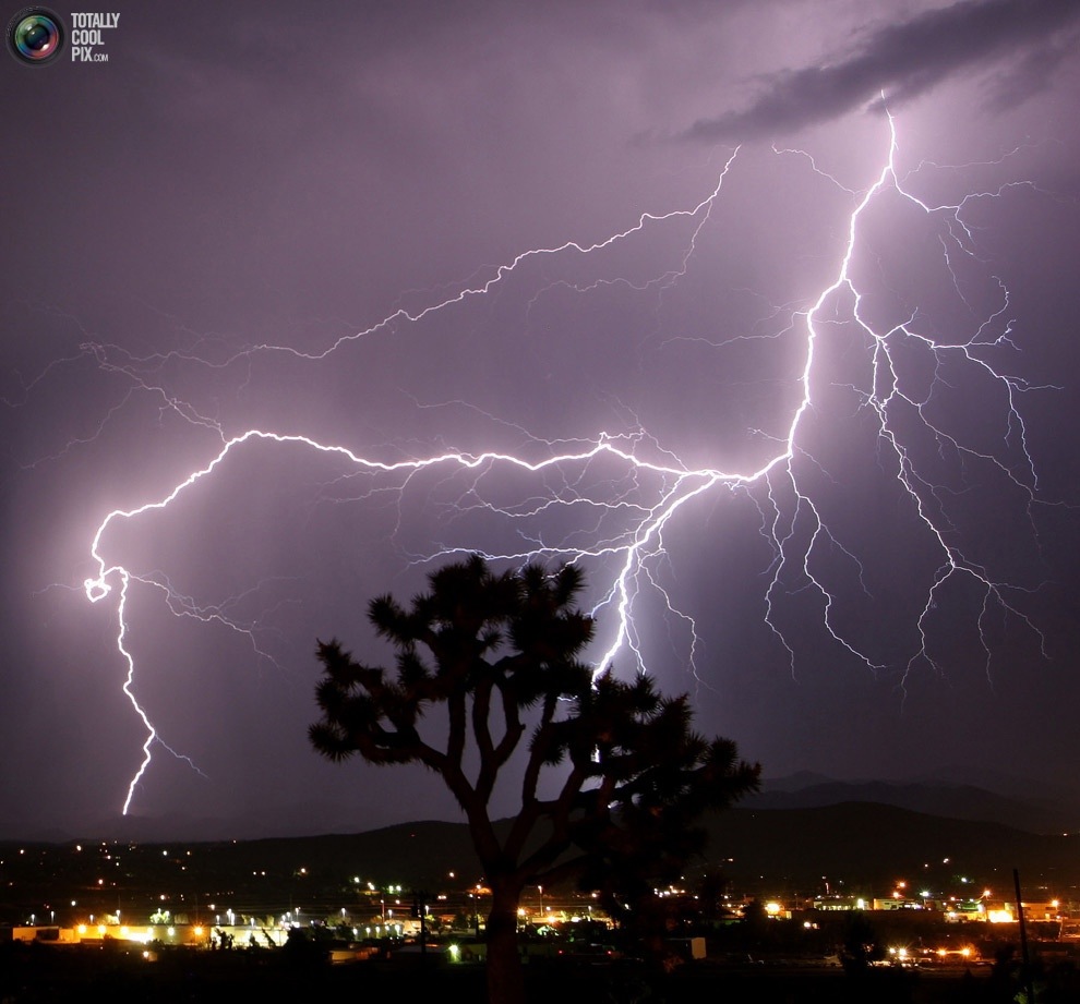 Lightning tears temple asunder.